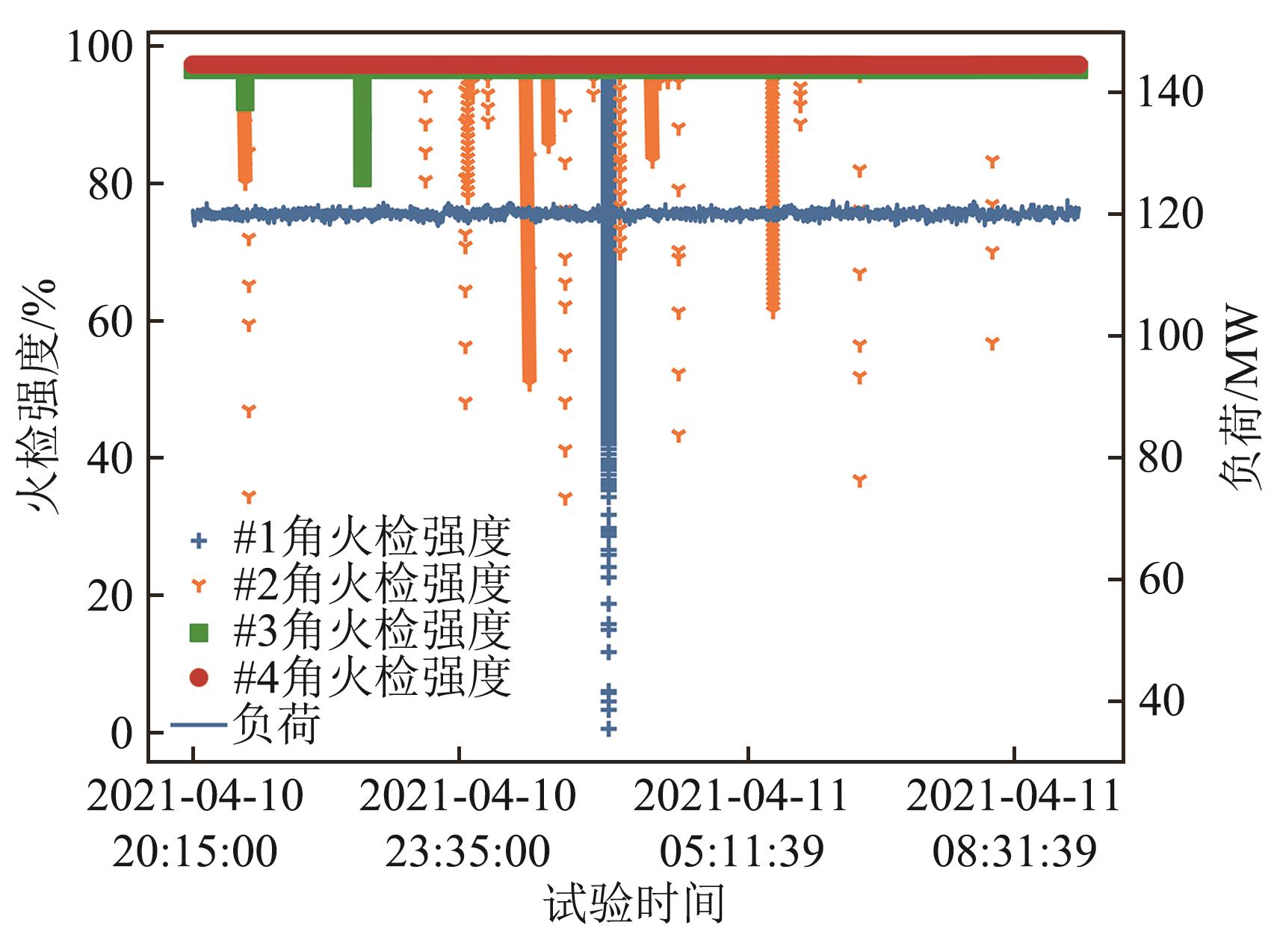 | Fig. 5 Fluctuation trend of flame detector in the A coal-mill at 20% rated load |