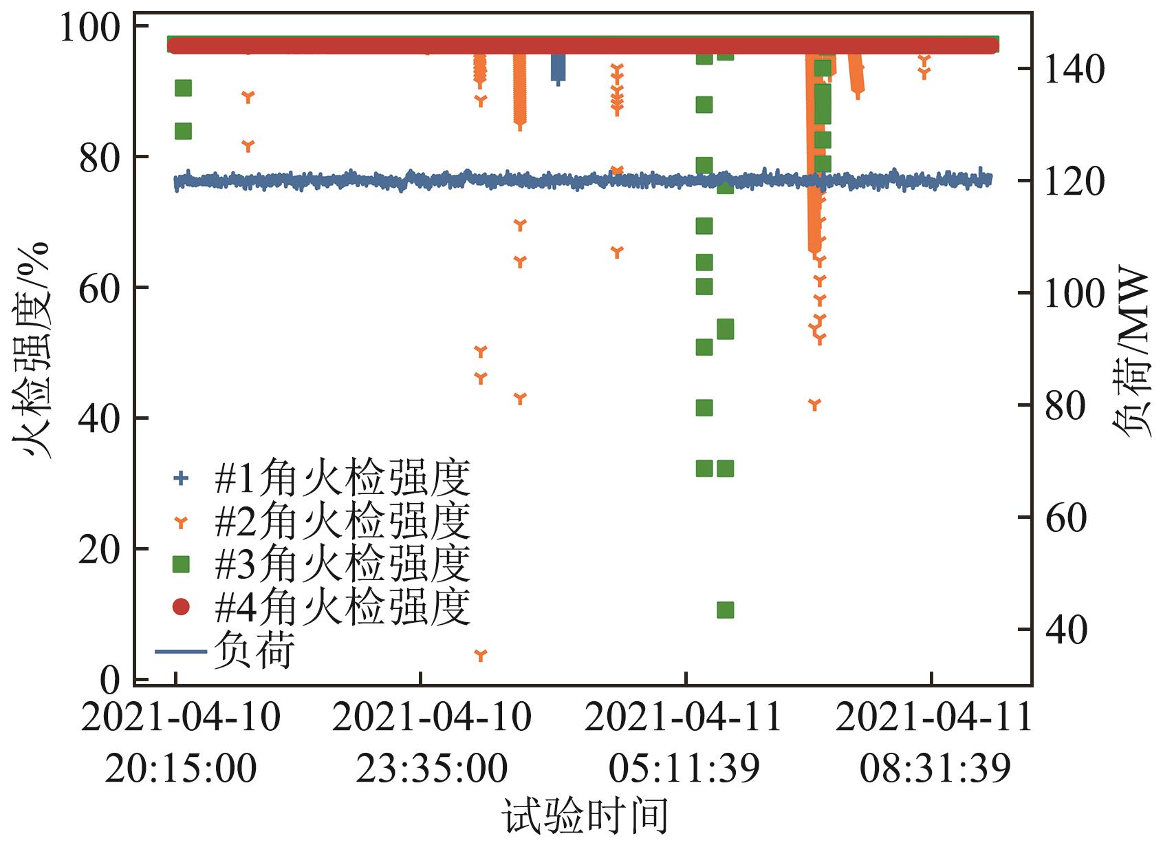 | Fig. 6 Fluctuation trend of flame detector in the B coal-mill at 20% rated load |