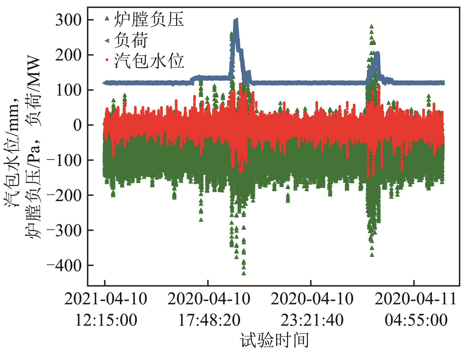 | 图14 20%额定负荷波动工况汽包水位和炉膛负压波动 |