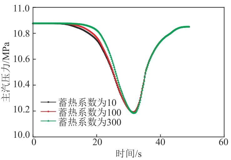| 图12 不同过热段蓄热系数下6 r/min增负荷方向主汽压力变化图 |
