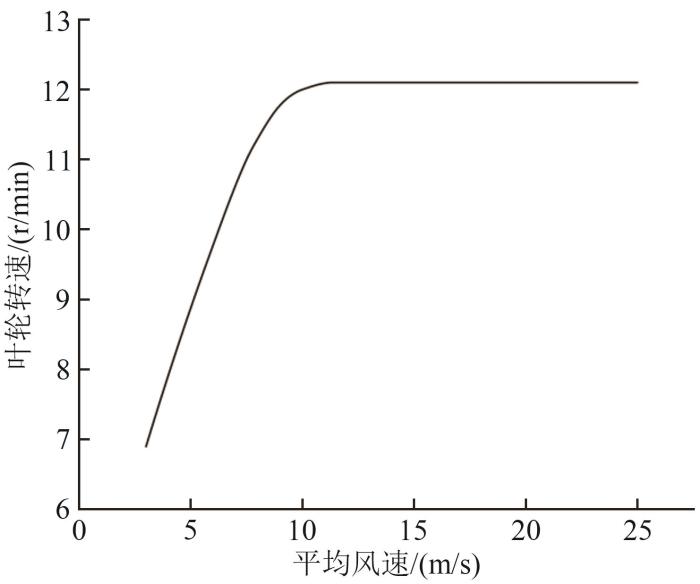 本文从NREL 5 MW风电机组切入风速3 m/s与切出风速25 m/s区间内,选取6种平均风速及与之对应的叶轮转速作为模拟工况,见表3,其中工况3为风电机组额定工况。风速与转速之间关系由