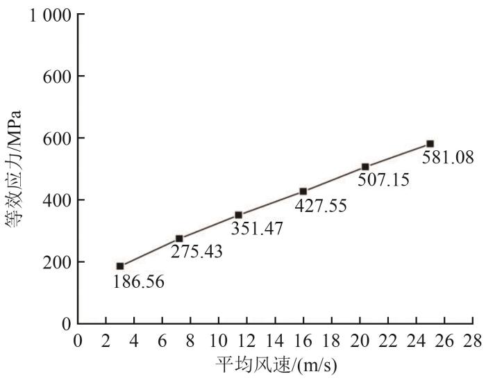 塔筒瞬态响应等效应力值随平均风速变化曲线