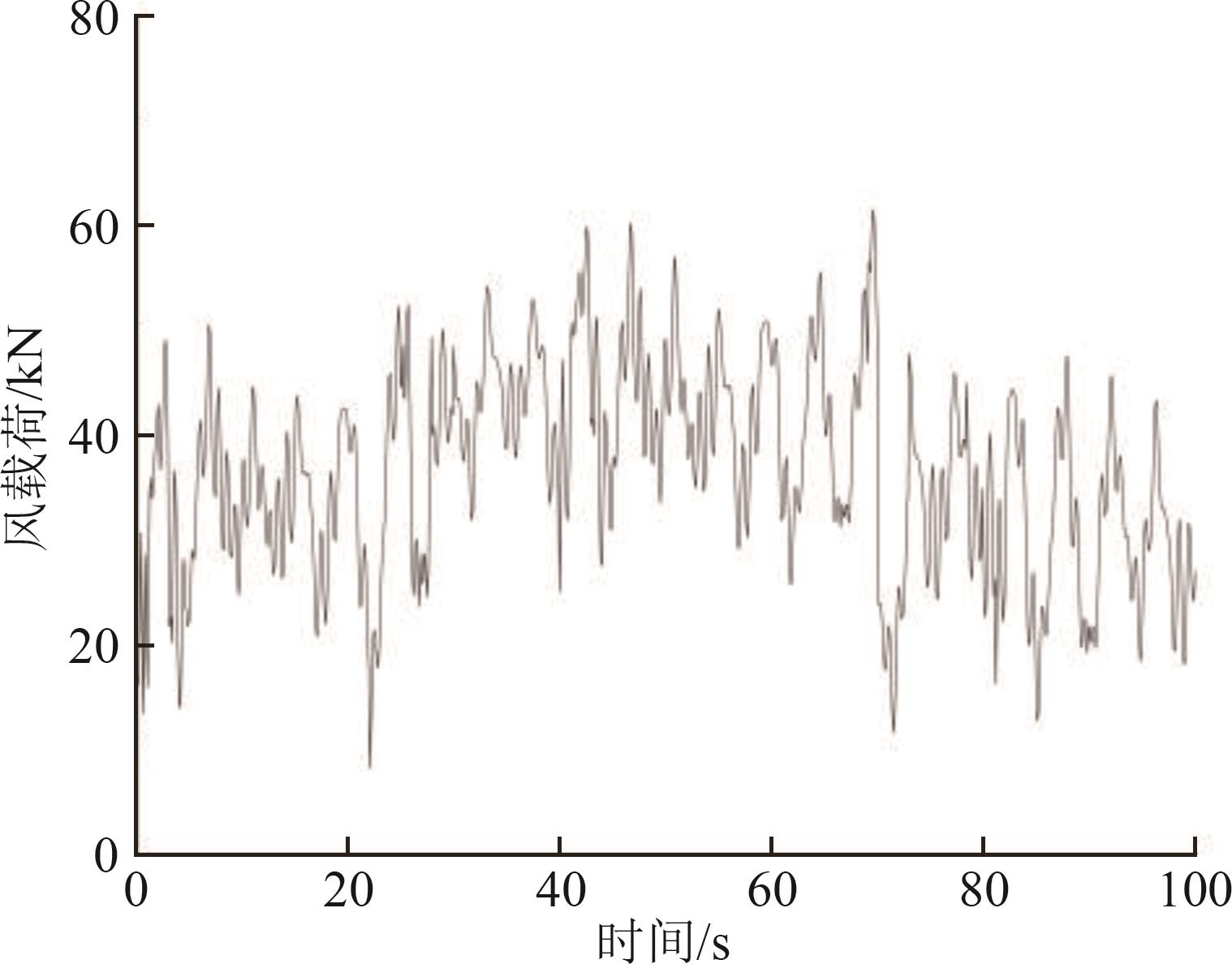 图6 额定风速下塔筒顶部脉动风载荷100 s时程曲线 |