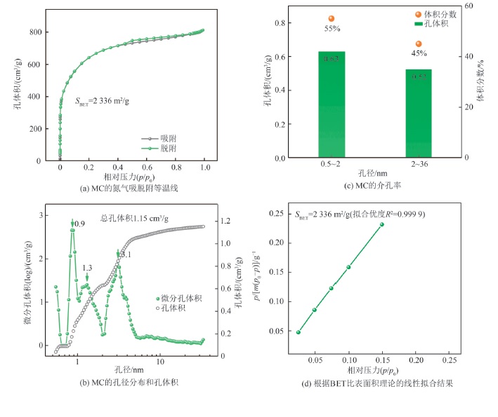 | 图2 MC的氮气吸脱附表征 |