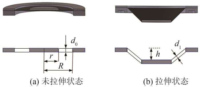 由于DE材料泊松比为0.49,可被视为近似不可压缩材料。因此,可认为DE薄膜的体积在变形过程中保持不变,则有