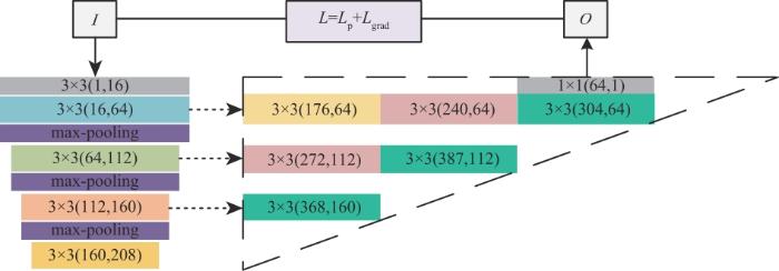 此外,由于梯度损失表征了细节信息的保留程度,因此将其引入,使得融合结果包含更丰富的纹理细节。同样,梯度损失还包括显著梯度损失和背景梯度损失,分别表示如下: