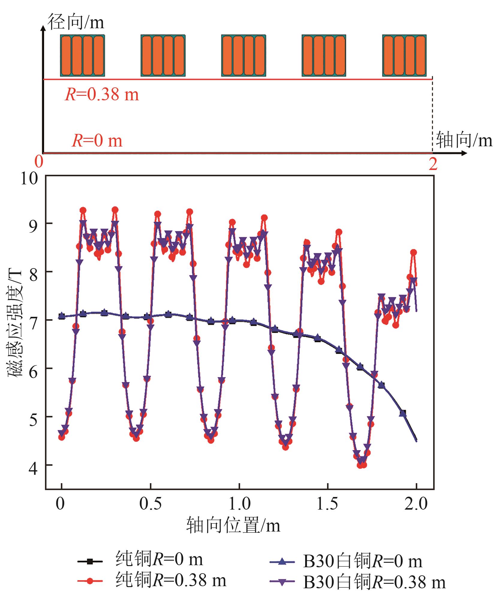 | 图5 不同导体材料各径向位置的磁感应强度曲线图 |