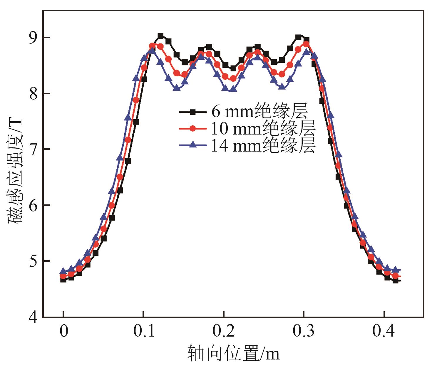 | 图9 不同绝缘层厚度下磁感应强度曲线图 |