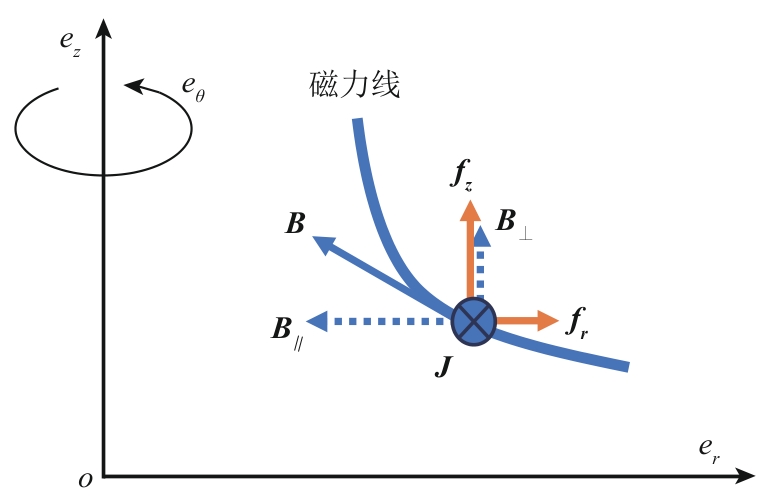 | Fig. 8 Schematic diagram of solving unit volume electromagnetic force in cylindrical coordinates |