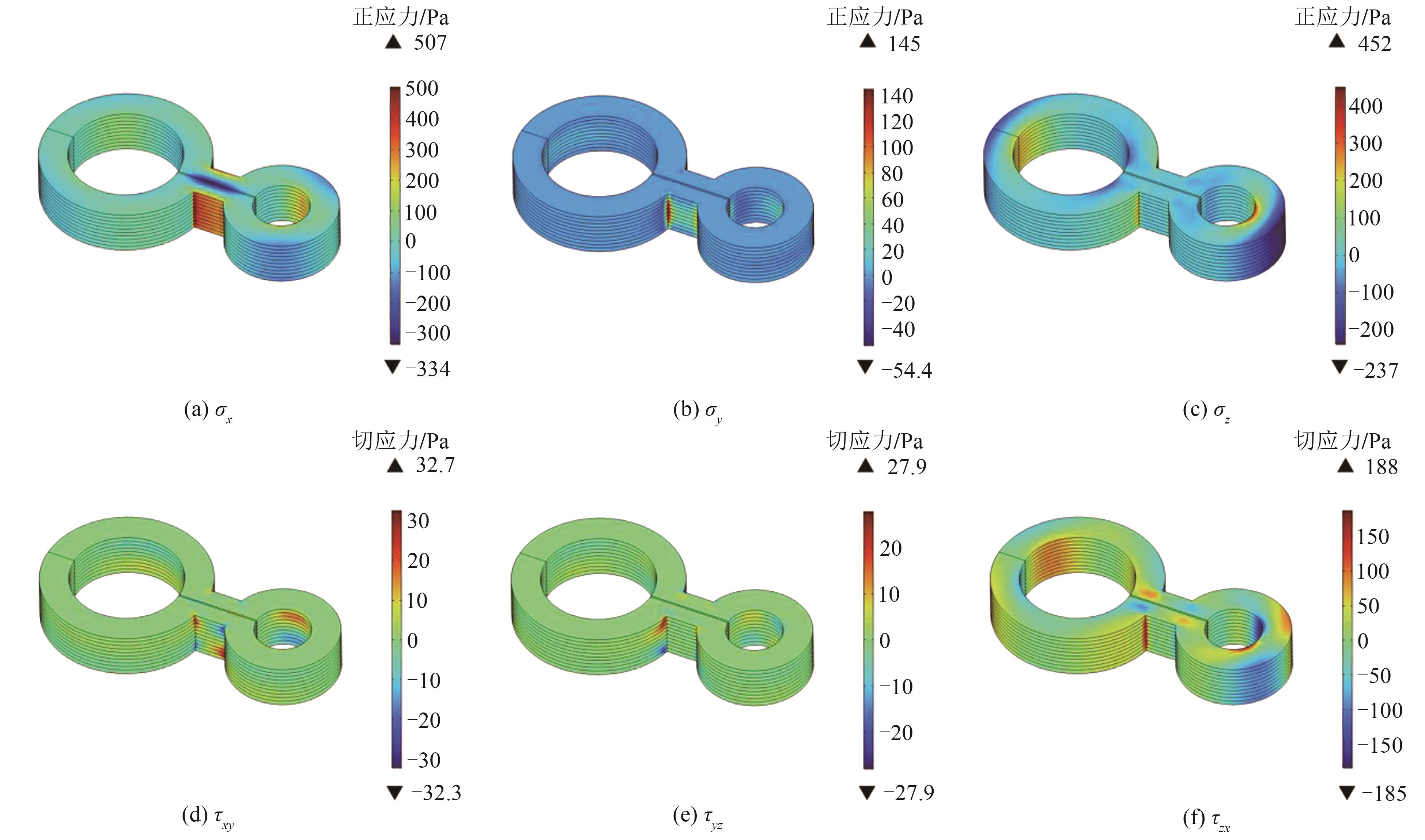 | 图11 葫芦形堆叠磁体的正应力、切应力分布云图 |