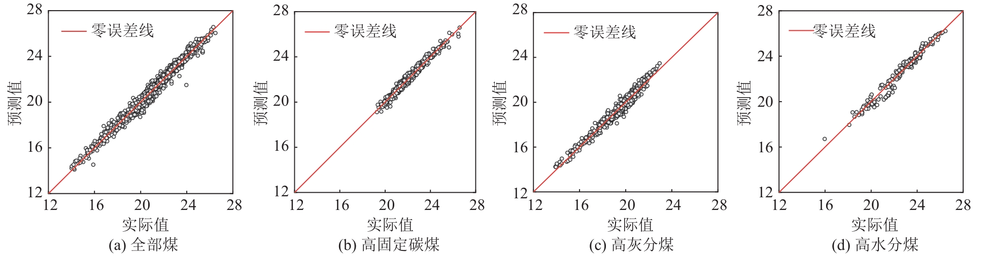 | Fig. 9 Comparison between actual calorific value and predicted calorific value of different coal types after clustering |