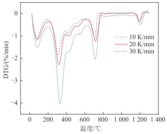 不同样品在升温速率为20 K/min工况下的DTG曲线