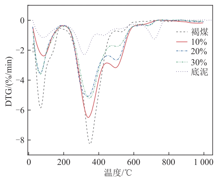 | 图8 不同比例掺混在20 K/min升温速率下的DTG曲线 |