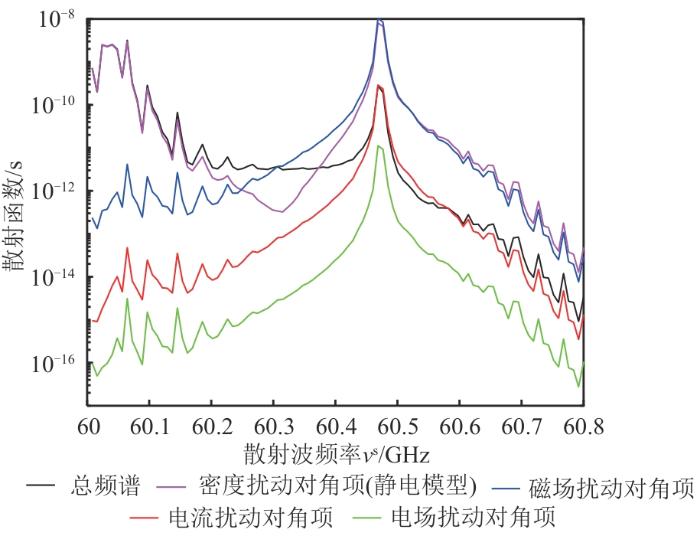 在大多数CTS散射频谱的计算算例中,全电磁模型与静电模型计算的散射频谱基本一致,这是因为在大多数情况下,密度扰动造成的散射功率远大于其他扰动量产生的散射功率。