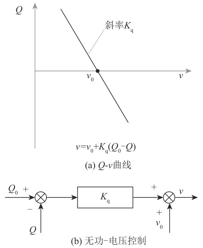 ... 可再生能源的功率波动会引起节点电压的波动,甚至导致电压跌落,进而引发电网的严重故障.在这种情况下,双馈风电系统的定子磁链会振荡,进而引起许多风力发电机组因电压下降而脱离电网.这不仅阻止了它们在故障期间向电网提供必要的有功和无功功率支持,还可能引起电网电压和频率的不稳定,从而对工业生产造成重大损失[63-64].为此,研究人员开展了关于并网变流器动态限流控制策略的研究,发现构网型变流器能有效抑制电压下降[65].此外,还有学者证实构网型储能能够在电网故障时替代同步机,其电压支撑特性曲线和控制框图如图2所示,图中v0和v分别为电压的参考值和检测值,Q0和Q分别为输出无功功率的参考值和检测值,无功功率偏差与下垂系数Kq的乘积项为电压的调节量.通过无功功率-电压(Q-v)下垂控制可以有效支持电网电压,对维持节点电压稳定和抑制电网故障具有显著效果[31,66].同时,Q-v下垂控制实现了防止并联构网型逆变器内无功循环的功能.在系统受到干扰引起工作点波动时,通过调节逆变器输出电压的大小,消除了构网型逆变器无功发电中的振荡,从而使逆变器之间的环流最小,保证了网络中多个并联逆变器的平稳运行. ...