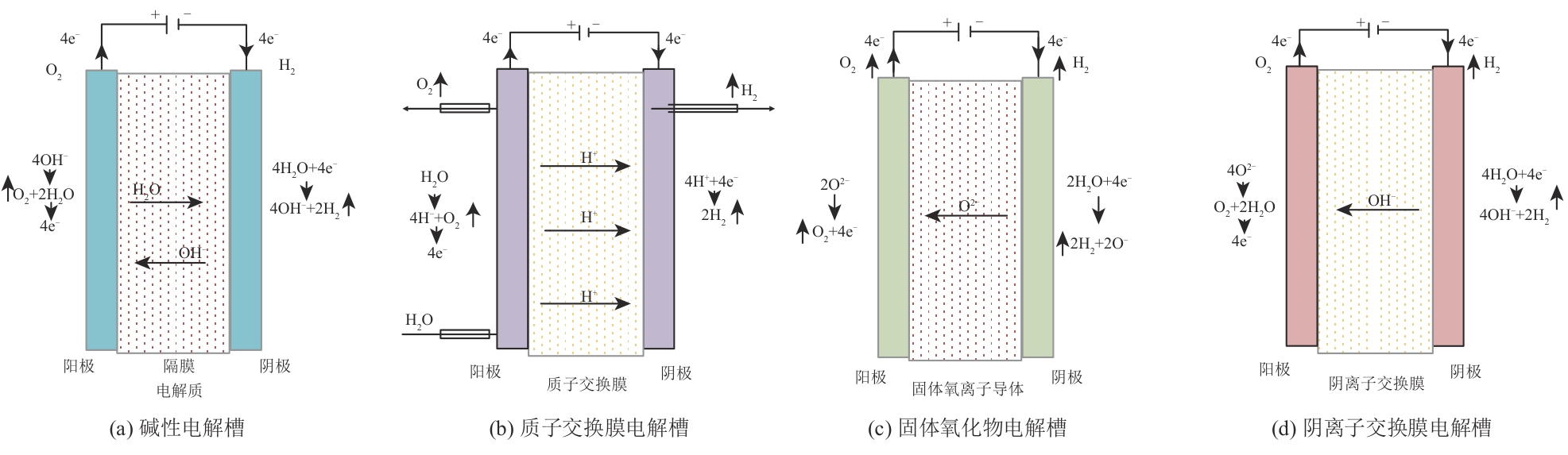 | 图1 4种电解水技术示意图 |