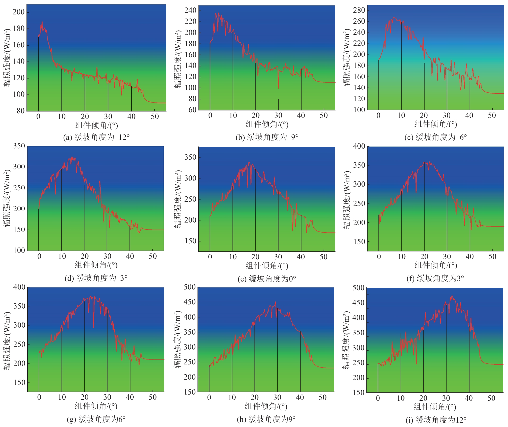 | Fig.9 Dynamic G-β simulation curves for gently sloping PV arrays |