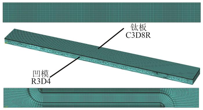 采用Lankford系数法(r值法)对钛的各向异性进行处理,采用Hill 48各向异性屈服准则作为材料的屈服条件。由于本文钛板轧制方向为纵向,因此在指定模型材料的各向异性主轴时,将流道纵向设置为沿板材轧制方向,流道垂直方向设置为垂直于板材轧制方向。