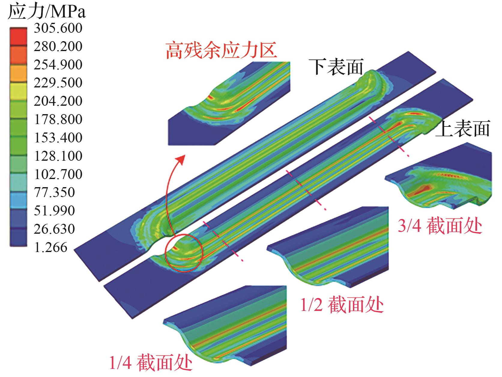 | 图6 钛双极板液压成形后残余应力分布 |