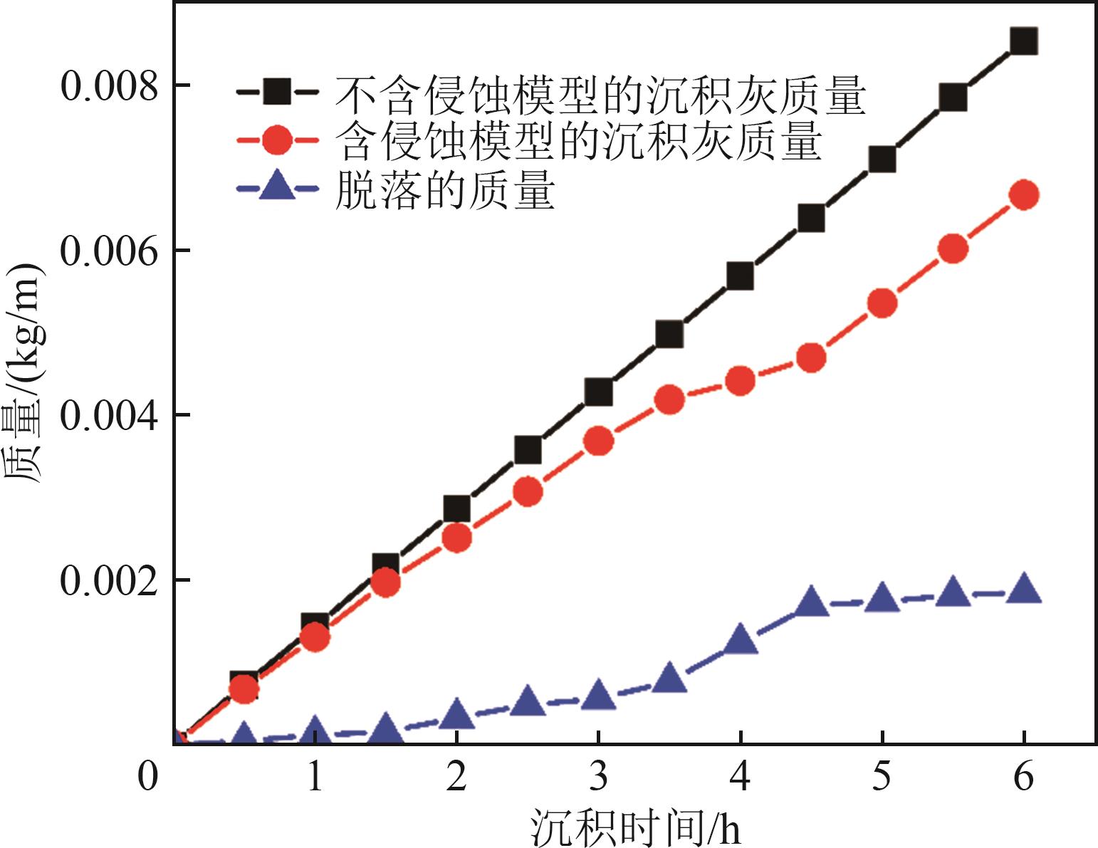 | 图3 换热管道沉积灰质量及脱落质量随时间的变化规律 |
